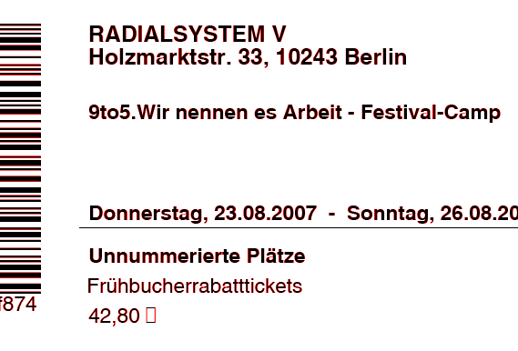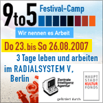 Da soll mal einer sagen, die virtuelle Bloggerei führt zu nix Realem. Immerhin habe ich jetzt Geld mit vollen Händen ausgegeben (besser: die Daten zur Kreditkarte ganz schmerzlos in einem Fensterl eingetippt … ja, der bargeldlose Verkehr verleitet und verführt), was die Lena durchaus befürworten und Lisa mit Sicherheit freuen wird – die 428 Cents (lt. Monsieur Tim: 4280 Cents) sind nämlich für das 9to5-Festival in Berlin, wo von Donnerstag bis Sonntag, also 4 Tage lange (eigenartigerweise heißt es aber überall 3 Tage) an der Spree gearbeitet wird, auf dass die Notebooks rauchen (uups – brauche möchte ich nicht ein neues Notebook? … aber das ist eine andere Geschichte). Was ich dort machen werde? Hm?! Zum einen Kontaktungen knüpfen und pflegen, ein paar Exemplare von „Rotkäppchen“ mitnehmen („Hei, guck ma da, du hast ja ne Gutenacht-Geschichte dabei?“), sie verschenken oder vertauschen und zum anderen einfach mal die Spree bewundern und die schreibende Seele baumeln lassen („Alter Schwede, was hängt denn da vom Baum runter?“)