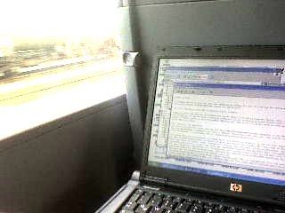 Im Zug, ja, diese Zeilen werden im ICE nach Leipzig (muss dort umsteigen, um nach Jena zu kommen!) geschrieben. Das erste Mal, dass ich es tue. Am Laptop zu schreiben, während die Gegend an meinem Fenster vorbeirauscht. Herrliches Gefühl. Werde ich öfters machen. Bestimmt!