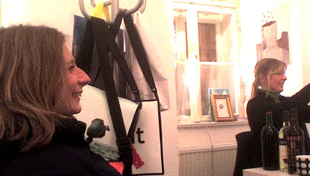 Alex R., der findige Erfinder und köstliche Schmuck-Designer streute mir Blumen. Ich tauschte ja einst „Rotkäppchen“ gegen zwei Glückskissen (die sich wie die alten Cola-Flascherln anfühlen). Jedenfalls verschlang er mein Buch und zollte Beifall. Wer hätte es gedacht? Immerhin hat der gute Alex weder PC noch Internet – trotzdem findet er sich mühelos in den virtuellen Welten zurecht. Die Tombola bescherte ihn den überdrunter Gewinn – ein Gutschein für „Tiret“ mit der Nummer 30. Die er aber nicht wollte. Er suchte sich 33 aus und freute sich wie ein kleines Kind. Vielleicht sollten wir daran gehen, das Internet hin und wieder abzuschalten. Hm?! Seine gute Freundin Julia, die er zum Umtrunk einlud, eine großgewachsene keramikmachende Studentin mit griechischen Wurzeln, gab Antworten auf astrologische Fragen – mein Aszendent „Stier“ dürfte für meinen Ästhetikfetischismus verantwortlich sein. Dachte ich mir. Dem Zwilling wär’s vermutlich herzlich egal, ob das Geschriebene hier im feinen Blocksatz ohne Löcher gelesen werden kann. Auf die Frage, welche Schriftart mich im Moment am meisten anturnt, führte ich die Jenson ins Rennen (nur ihre kantigen Punkte gefallen mir nicht). Und natürlich gäb’s da viele andere, die mich träumen lassen. Ja, ja.