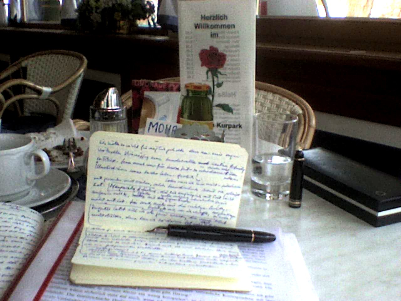 Ohne es zu wollen, drängte sich plötzlich die Danksagung für „Tiret“ auf, die ich bis jetzt immer aufgeschoben hatte. Wundersame Inspiration. Allerherrlichst, wenn die Füllfeder übers Blatt hetzt. Freilich, alles nur eine grobe Skizze, aber immerhin. Schön, dass ich dann schreiben werde können: „Reichenau, 30.12.2007“ … klingt gar nicht schlecht. Und außerdem hab ich dann bei der Gemeinde Reichenau ein Stein im Brett. Der gute Autorenkollege Peter B. sagt mir ja, dass dort hochdotierte Literatur-Ausschreibungen zu gewinnen sind.