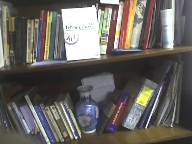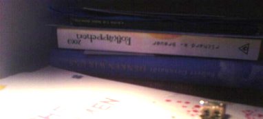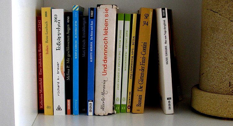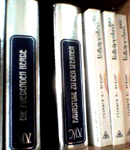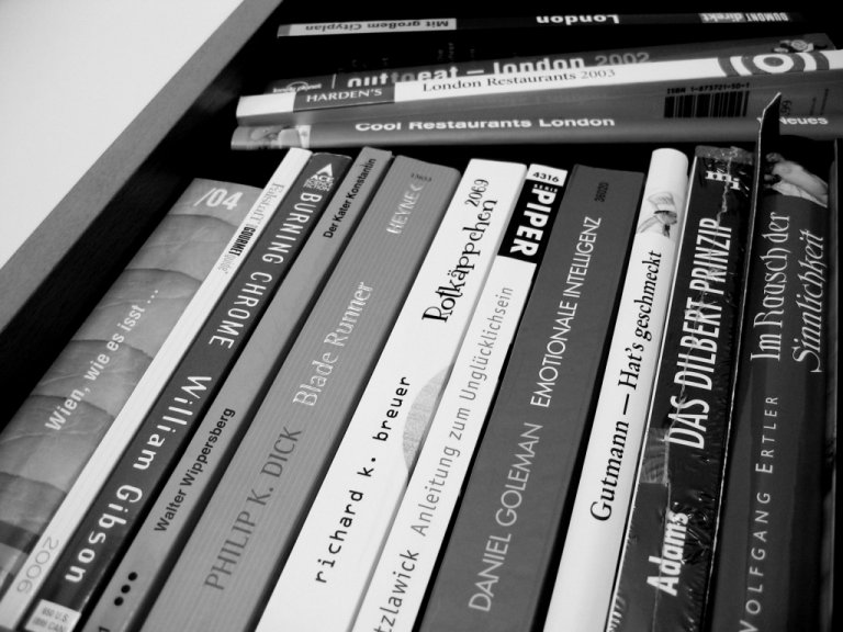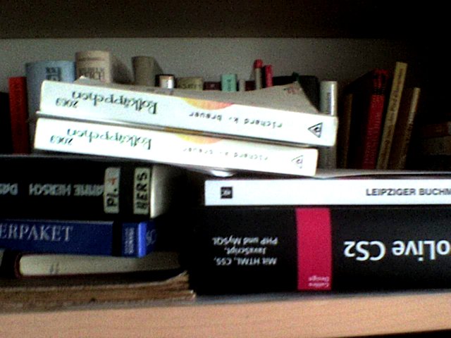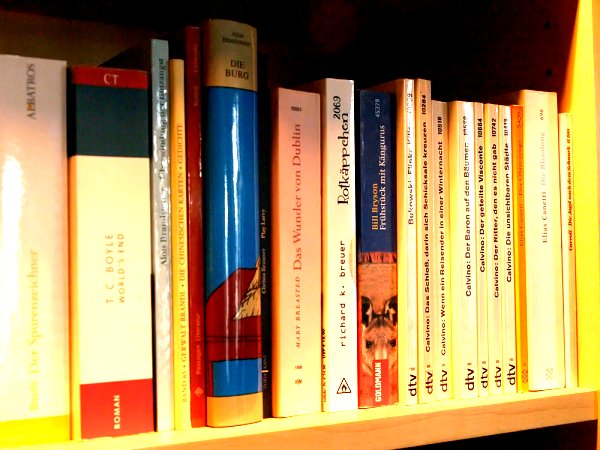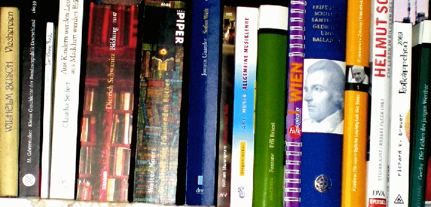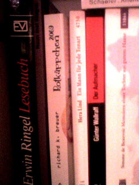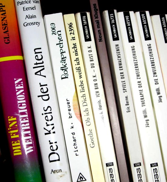 spontan: das Foto wurde vom Autor bei einem Besuch spontan gemacht (der Besitzer hatte also keine Möglichkeit, die anderen Bücher im Regal zu drapieren bzw. auszutauschen)