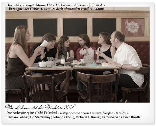 Durch Zufall (wie sonst?) über dieses wunderbare Blog Sprechbude gestolpert. SchauspielerInnen lesen (gemeinfreie) Texte und unsereins darf sich zurücklehnen und entspannt oder fasziniert lauschen. Morgenstern, Rilke, Kraus, Kafka, Shakespeare („Projekt Macbeth“), alles da, was Rang und Namen hat. Einfach köstlich. Einfach gut. So macht Internet Freude.