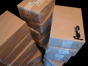 Der LKW, der sich als Kleinlaster entpuppte, brachte die Bücher. Hübsch handlich verpackt. Trotzdem sind 10 Exemplare nicht gerade lässig leicht unter den Arm zu klemmen. Die Pakete, gemeinsam mit dem Fahrer, im Schweiße meines Angesichts, ins „Zentrallager des Verlags“ geschleppt und später säuberlich geschlichtet. 50 Pakete wollten untergebracht werden. Und wurden untergebracht. Verstaut, sozusagen. Gut. Nach Bezahlung der Fracht war alles getan. Und natürlich noch nichts gemacht. Das Spielefest wartete. Dort sollte Schwarzkopf die nächsten Tage präsentiert werden. Zusammen mit dem Spielemagazin „frisch gespielt“.