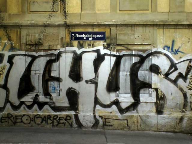 Dem Bürger wurde Zeit seines Lebens eingetrichtert, wofür er sich aufzuregen habe. Nur in den vorgegebenen engen Grenzen darf er sich empören, darf er zum „Wutbürger“ werden. Verlässt er hingegen die eingetretenen Pfade, will er mit forschem Elan die systemische Korruption der „gutmenschlichen Moralisierer“ aufzeigen, wird er brachial zu Fall gebracht. Der gewöhnliche Bürger darf sich über plakatiert-plakative „Busen und Penise“ ereifern, aber nicht darüber, wie er in seinem Umfeld zu leben wünscht. Sehen Sie sich doch das obige Bild eine Weile an. Möchten Sie in solch einer Gasse wohnen, die den poetischen Namen Mondscheingasse trägt, aber deren Realität nicht mit den zarten Versen eines Dichters zu vergleichen ist, sondern mit der kratzigen Gesangsherauswürgung einer Punkband*?