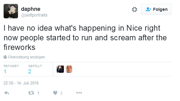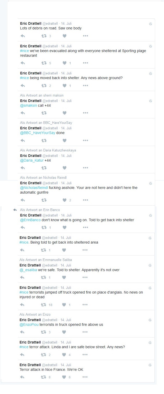 Merkwürdigkeiten in Nizza, 14. Juli 2016: Timeline der Meldungen auf Twitter