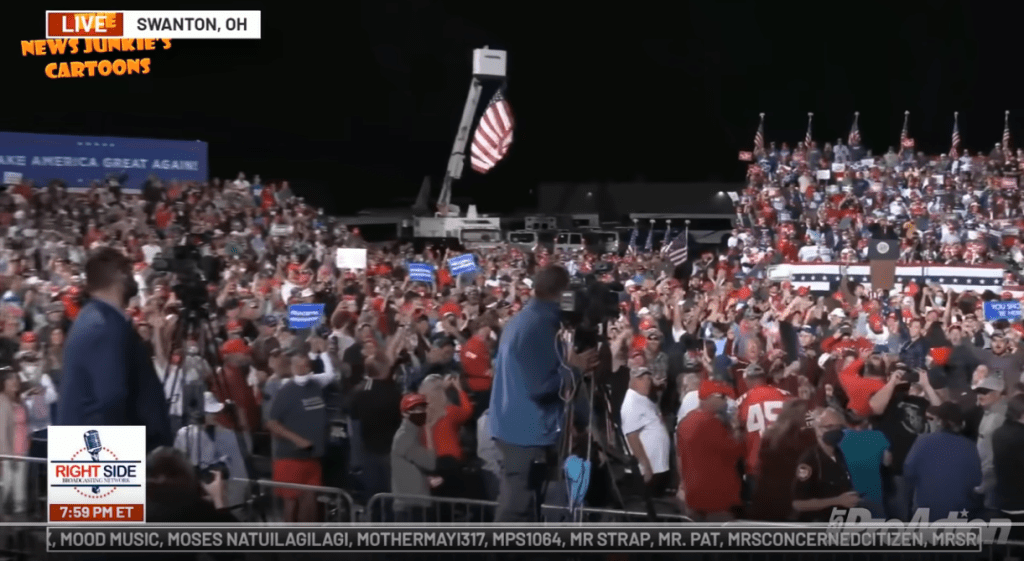 Zu guter Letzt vergleichen wir die Begeisterung einer Wahlkundgebung von Donald Trump in Ohio und von Joe Biden in North Carolina. Hier das Video und als Vorgeschmack zwei Screenshots: