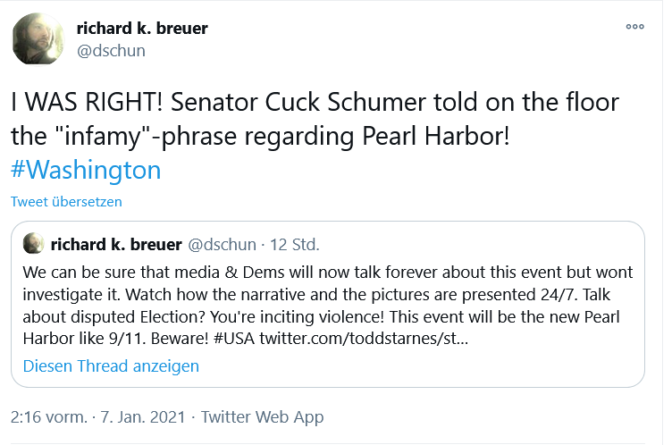 Das Capitol wurde „gestürmt“, hieß es in den Eilmeldungen. Bilder zeigten Menschen, wie sie durch Absperrungen hindurch in das Gebäude selbst kamen und dort herumwanderten. Dank ausgesuchter Bilder gut bezahlter Fotografen, konnten die Schlagzeilen in den Medien hübsch dramatisch ausgekleidet werden. Aber wie so oft, erzählen die Medienhäuser, allesamt seit vier Jahren gegen Präsident Trump eingestellt, nur die halbe Wahrheit. Die Medienleute und die Demokraten hatten jedenfalls ihr neuerliches Pearl Harbor – bzw. in einer anderen Analogie – ihren ersten Reichstagsbrand.