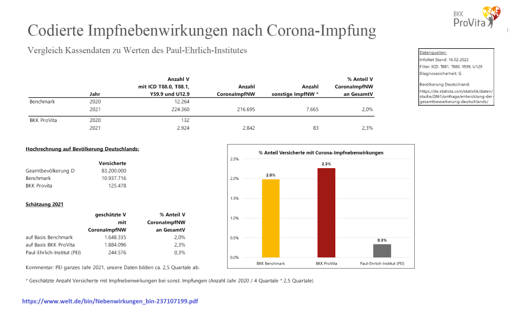 Da hätte es mich beinah vom Stuhl gehauen. Durch Zufall über die Nachricht gestolpert, dass der Vorstand einer großen deutschen Krankenkasse (BKK) dem Paul-Ehrlich-Institut einen Brief geschickt hat, der exklusiv in der renommierten Tageszeitung Die Welt Erwähnung fand. Im Artikel Mehr Impf-Nebenwirkungen als bisher bekannt wird das Ergebnis einer Auswertung kassenärztlich abgerechneter Impfnebenwirkungen im Jahr 2021 veröffentlicht: