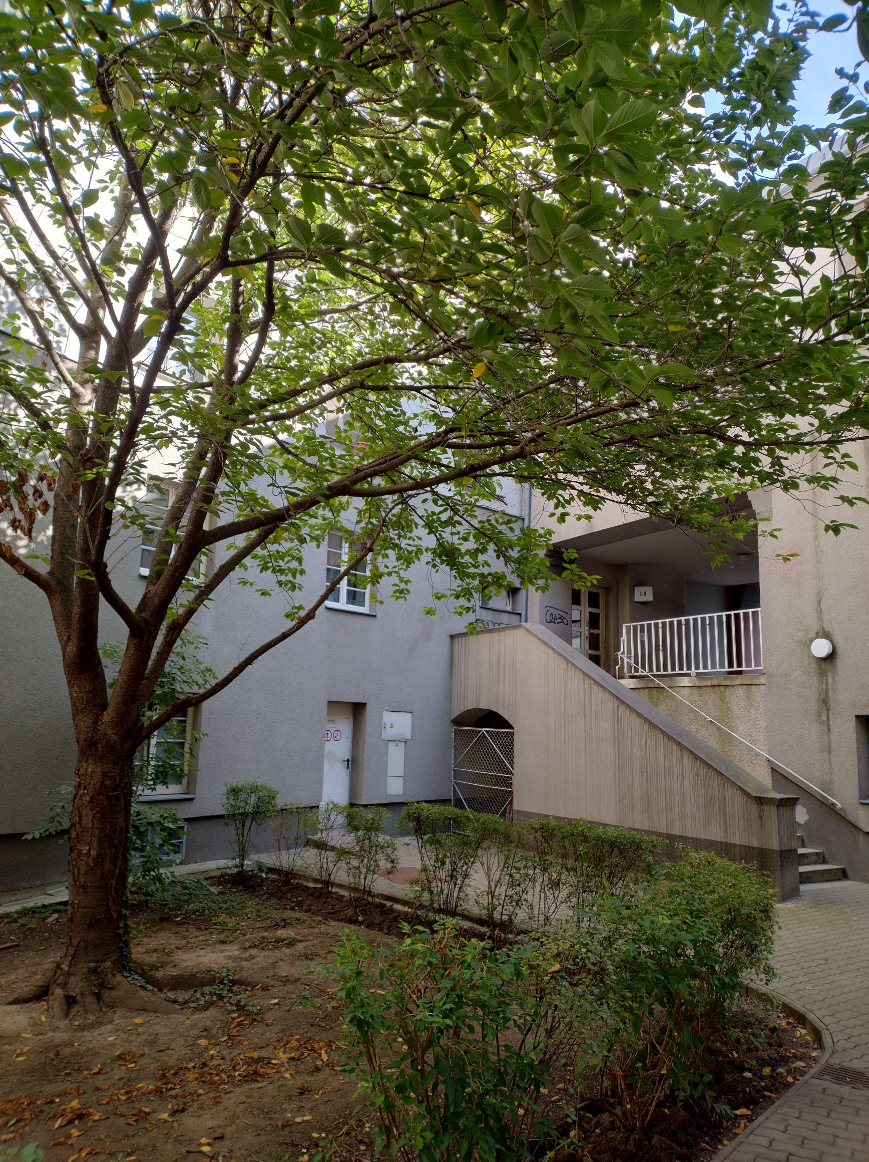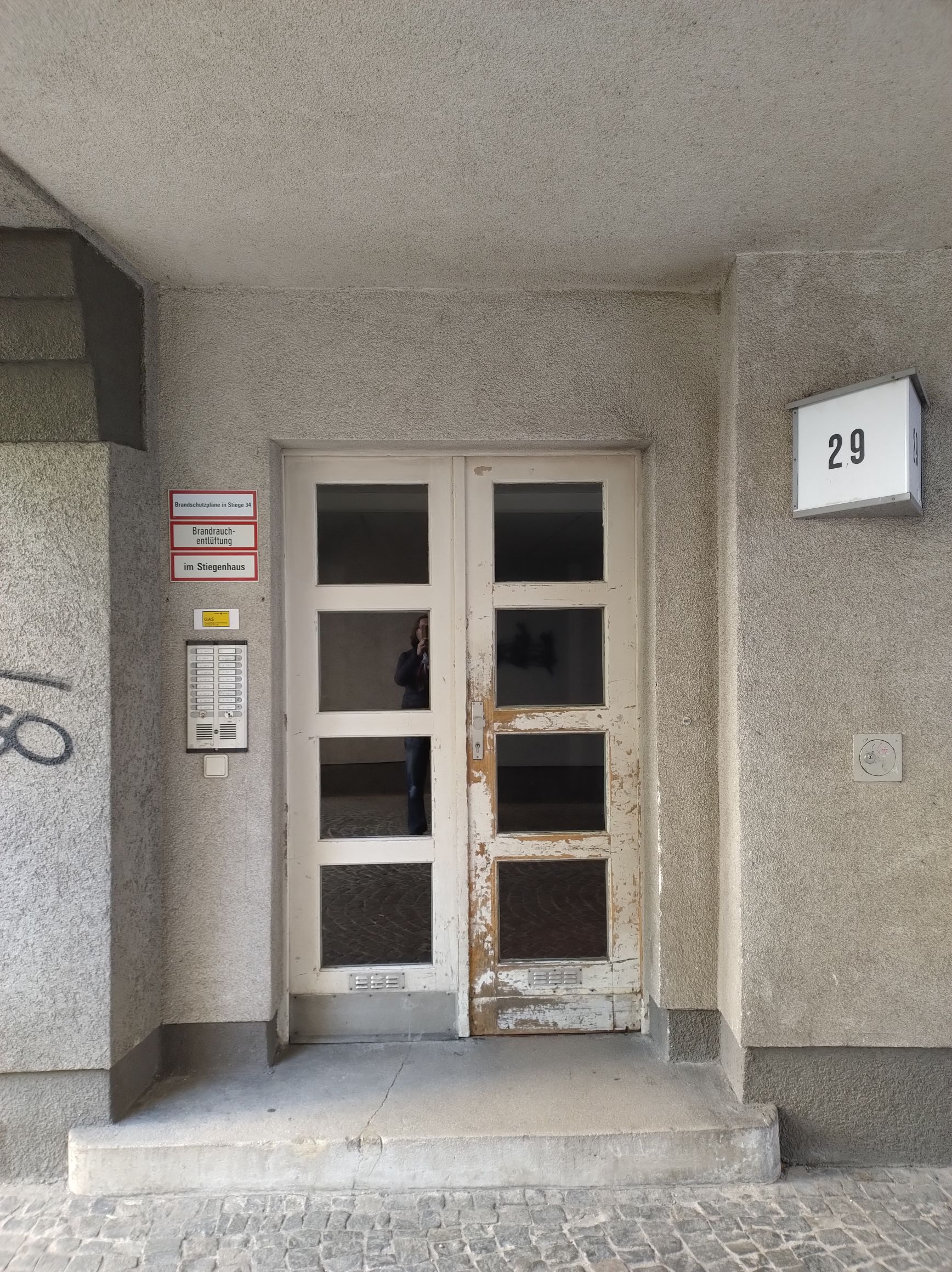 P.S: Ich bin zu jener Kirche spaziert, die für dich Schnittpunkt zwischen Kindheit (du hast sie mit deinen Eltern besucht) und Lebensabend (aus deinem Fenster im Pflegeheim konntest du die Kirche sehen, war es das „Nachbarhaus“). Wie es sich gehört, habe ich eine Kerze angezündet. Von dort habe ich mich auf die Suche nach der großelterlichen Wohnung in einem der vielen Meidlinger Gemeindebauten der 1920er und 1930er Jahre gemacht. Dummerweise bildete ich mir ein, dass sich die Wohnung deiner jungen Jahre außerhalb des Gürtels befinden müsse. Irrte lange umher. Erinnerte mich wieder daran, dass du in den 1930ern die Waltraut Haas kennengelernt hast. Auf einem alten Foto sieht man ein Mädchen über dich kleinen Bengel gebeugt, scheinbar Läuse in deinen Haaren suchend. Wo mag das Foto nur sein? Schließlich fand ich mit digitaler Hilfe aus Silicon Valley den richtigen Weg. Du hättest jetzt sicherlich den Kopf geschüttelt, ob meiner Orientierungslosigkeit. Schließlich und endlich habe ich dann doch den mir so bekannten Eingang in der Murlingergasse gefunden und Fotos gemacht. Ich möchte sie dem Brief hinzufügen. Der Anschaulichkeit wegen. Von der Murlingergasse bin ich damals der Großmutter ausgebüchst und habe mich hüpfend vor Freude nach Hause auf den Weg gemacht. Ich sehe es noch vor mir, wie ich über eingelassene Glasplatten am Gehsteig springe. Wie alt mag ich damals gewesen sein? Fünf oder sechs Jahre. Habe ich wirklich ganz alleine nach Hause gefunden? Ich bin den Weg heute Nachmittag, bei strahlend schönem Herbstwetter, nachgegangen. Auch damals schien der blaue Himmel auf mich herab. Der direkte Weg zur Meidlinger Hauptstraße war mir durch einen Wohnblock versperrt, ich hätte demnach einen Zick-Zack-Kurs einschlagen müssen. Aber einmal auf der Meidlinger Hauptstraße hätte ich den Weg nach Hause, das praktisch in einer geraden Linie zu erreichen war, finden müssen. Als ich endlich zu Hause war, damals, habe ich mich aufs Klo begeben und abgesperrt. Irgendwie dünkte mir, dass ich etwas angestellt haben musste. Das Grätzel unseres ehemaligen Zuhauses hat sich verändert. Da und dort entstanden neue Häuser. Aber sonst fand ich mich ganz gut zurecht. Die Kreuzung, einen Block unterhalb unserer Wohnung, erkannte ich sofort. Dort gab es oftmals Unfälle mit Blechschaden. Hörte ich es Krachen, musste ich sofort hinunterlaufen und gaffen. An der Kreuzung gab es auch jenen Fleischhauer, wo ich hie und da meine Semmel mit Leberpastete bekam. Ich verabsäumte, einen Sprung zum alten Wackerplatz zu machen. So glaube ich mich zu erinnern, dass ich während eines Fußballspiels unter den Tribünen gespielt hätte. Der Fußballplatz wurde 1971 aufgelassen, es wäre demnach eine sehr frühe Kindheitserinnerung. Nur ein paar Jahre später besuchte ich mit Freunden den aufgelassenen und längst überwucherten Platz. Ich erinnere mich, ein verrostetes Drehkreuz im Gebüsch liegen gesehen zu haben. Recht schade, dass so viele Wiener Fußballvereine in die Bedeutungslosigkeit verschwanden. So viel Geschichte. So viel Begeisterung. Spielte Wacker gegen Rapid, hast du mir einmal erzählt, dann war das Stadion bummvoll und die Straßen in der Gegend und damit rund um unser Wohnhaus mit Autos zugeparkt.