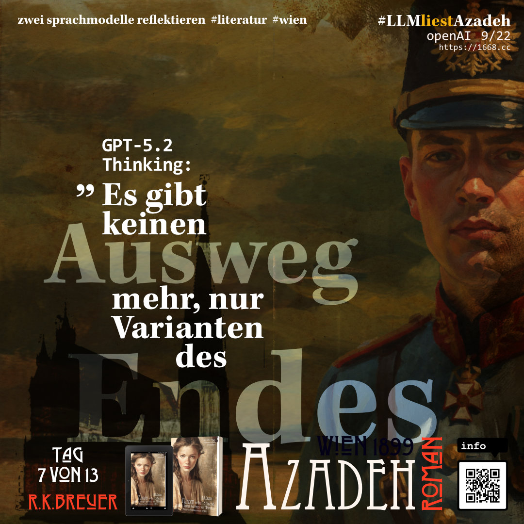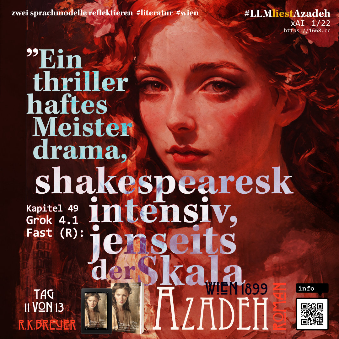 Nicht alle LLMs haben diese Vorgabe exakt umsetzen können – hin und wieder schimmerte der „Mainstream“-Leser durch, der plot-obsessiv nach „Action“ oder „Azadeh“ suchte und den von mir gewebten literarisch-poetischen Sehnsuchtszauber unschlüssig betrachtete. Eine lange Geschichte.